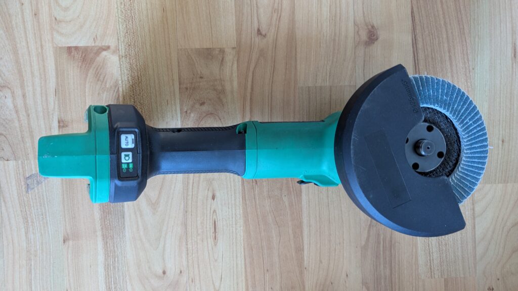 Der Akku-Winkelschleifer kann in der Drehzahl zwischen 3200 und 10000 Umdrehungen pro Minute eingestellt werden. Durch das relativ geringe Gewicht und die angenehme Ergonomie lässt sich der Winkelschleifer sehr angenehm nutzen.